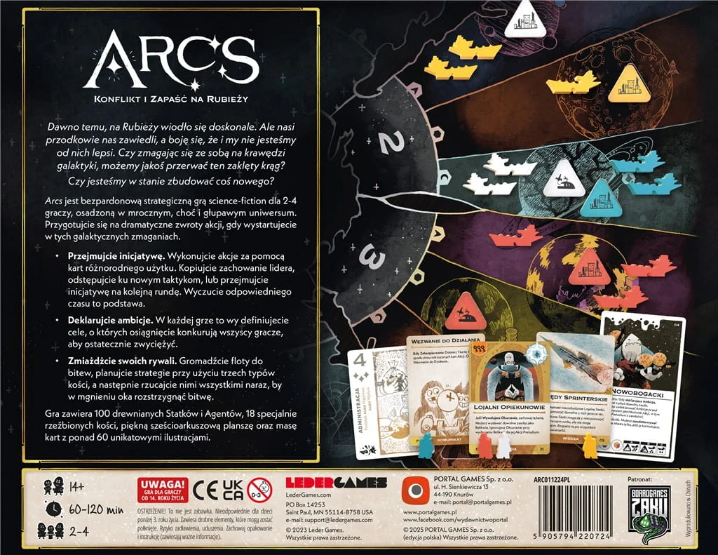Arcs to strategiczna gra planszowa twórców uznanego tytułu Root, która przeniesie Cię do upadającego imperium, w którym walka o dominację toczy się na wielu frontach. Przygotuj się na emocjonujące manewry, które wymagają sprytu, planowania i błyskawicznej reakcji! Ten wyjątkowy tytuł wprowadza nowatorski system rozgrywki, który doczekał się wielu nagród i wyróżnień, stając się jednym z najbardziej cenionych tytułów w ostatnich latach.