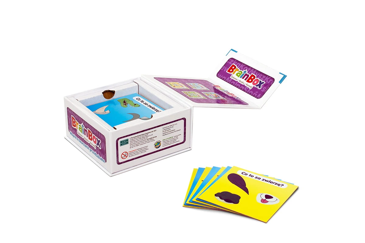 Szukasz gry, która pozwoli Ci spędzić z dzieckiem wartościowy czas, a jednocześnie będzie wspierać jego rozwój już w okresie przedszkolnym? BrainBox - Poznaję zwierzęta to coś dla Ciebie! Ta rodzinna gra zabierze młodsze i starsze umysły w ekscytującą podróż pełną ciekawych odkryć rozwijających spostrzegawczość i pamięć. Na 24 kartach znajdziesz urocze zwierzęta domowe, te żyjące dziko na odległych lądach, a także pod wodą.