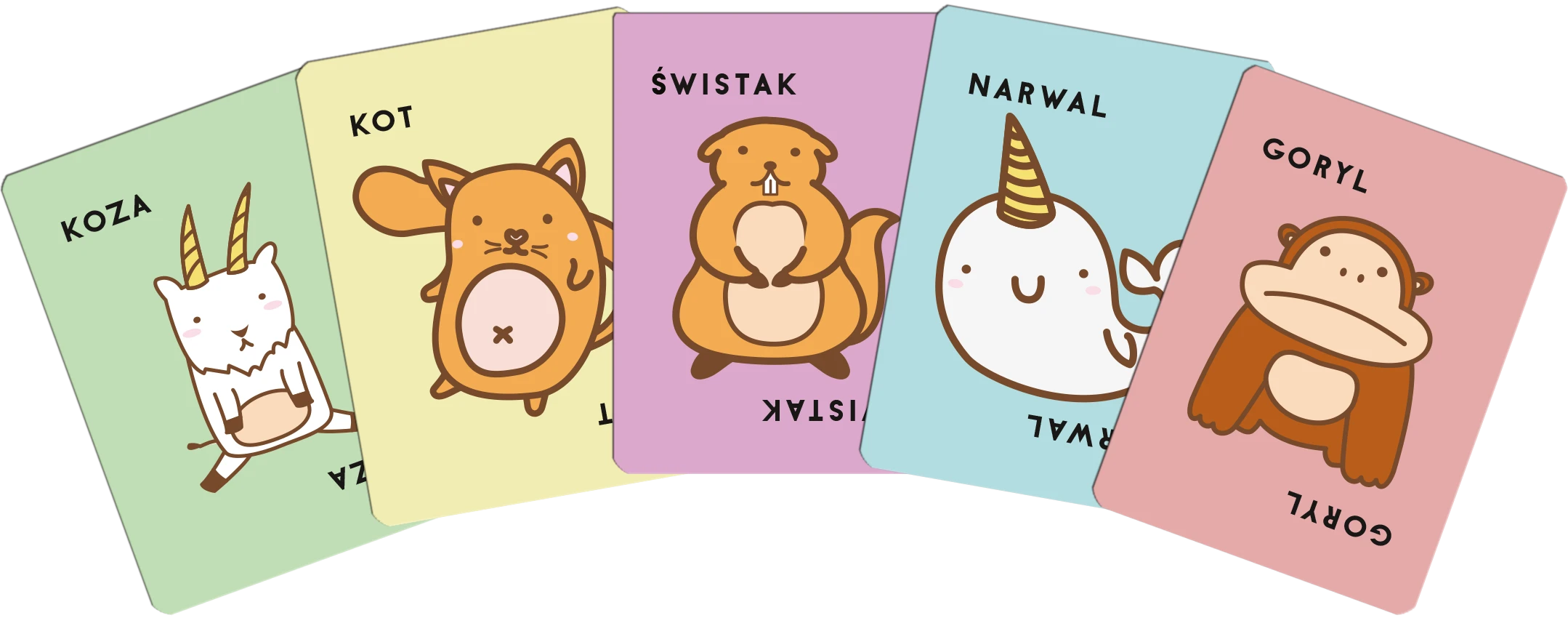Opanowane? To świetnie, bo czekają na Was jeszcze karty z Narwalami, Gorylami i Świstakami, które tylko czekają, żeby zburzyć Wasz rytm gry! Gdy pojawią się na stole, musicie jak najszybciej wykonać przypisane do nich gesty.