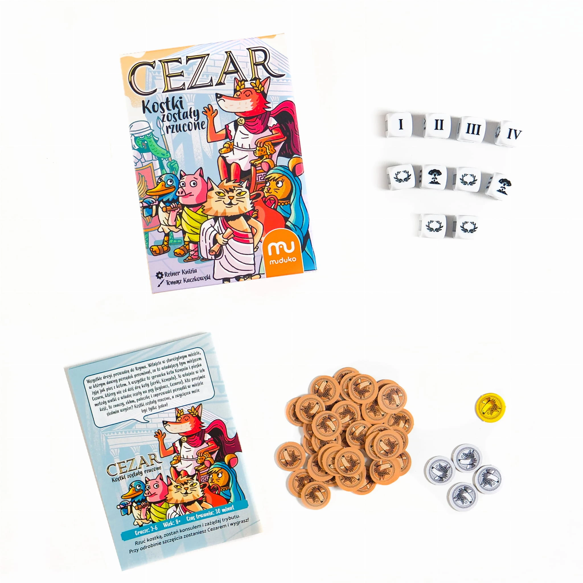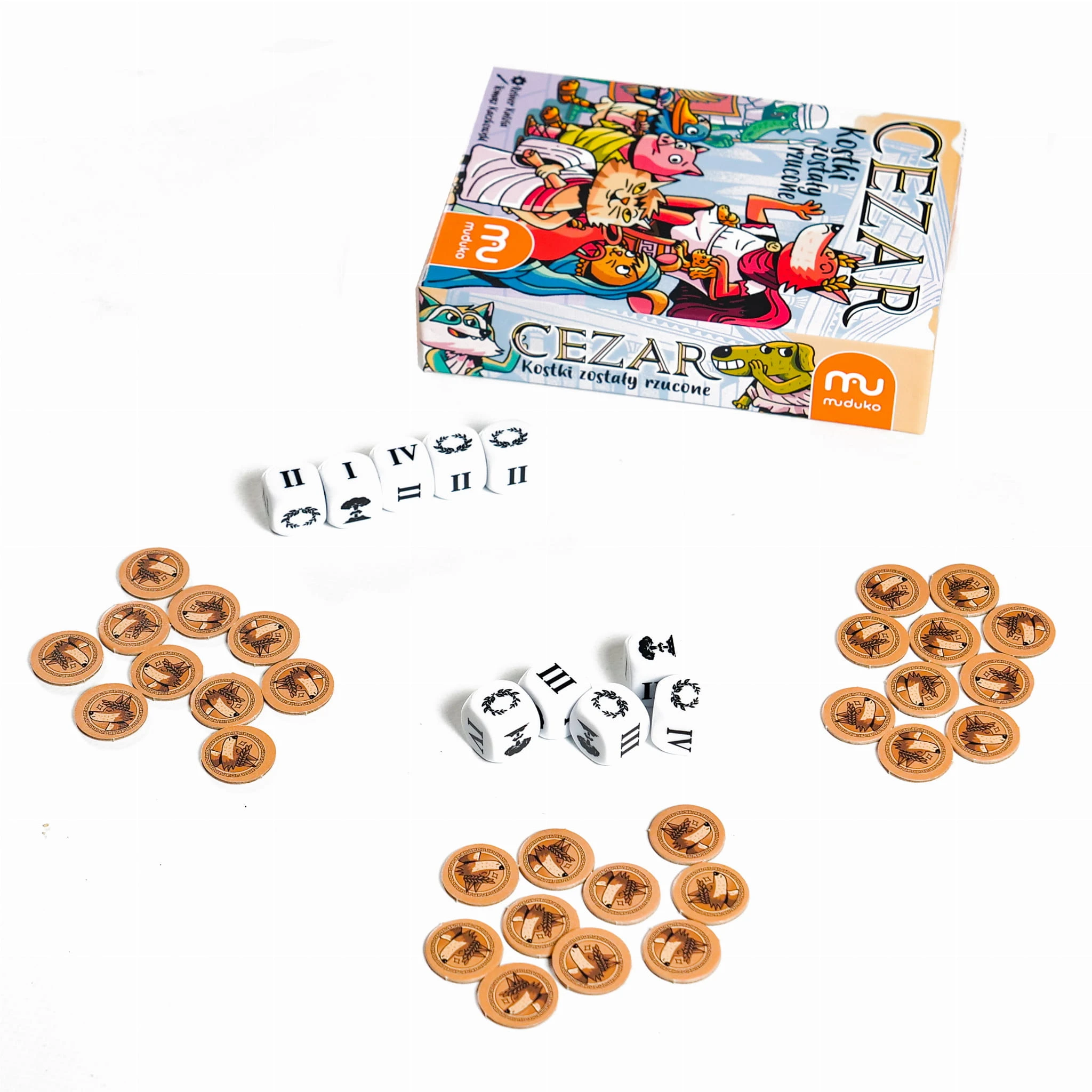 Rzuć kostką, zostań konsulem i zażądaj trybutu. Przy odrobinie szczęścia zostaniesz Cezarem i wygrasz! Dynamiczna gra kościana z prostymi zasadami dla całej rodziny.