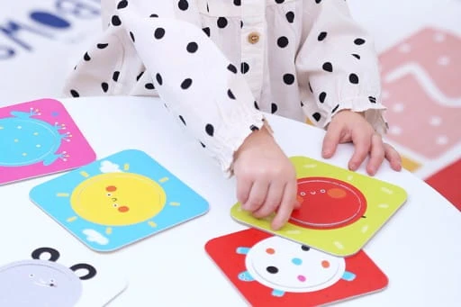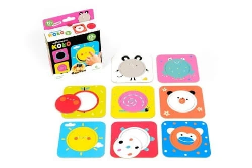 Czas odkryć koło! Edukacyjny zestaw sprawdzi się jako pierwsze puzzle dla maluchów. Składa się 8 dużych dwuelementowych układanek. Zabawa polega na dopasowywaniu wyjmowanych kółeczek. Możecie je dowolnie wymieniać pomiędzy tabliczkami, co sprawia dodatkową radość.
