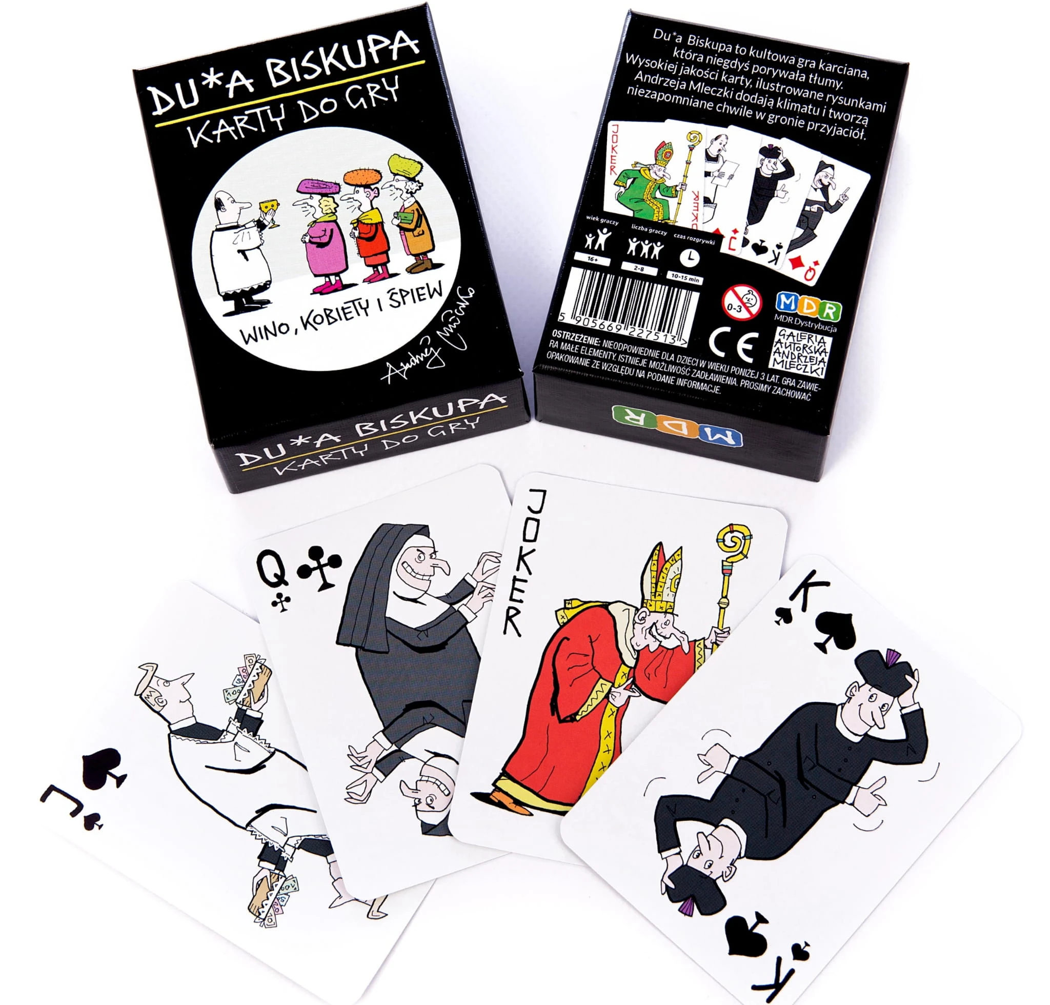 Du*a Biskupa – Karty do gry to humorystyczna i zabawna gra karciana towarzyska wydana przez MDR, idealna na imprezy, spotkania z przyjaciółmi i rodzinne wieczory gier. Gra bazuje na klasycznych zasadach popularnej karcianki znanej w Polsce, z lekkim, humorystycznym twistem, który sprawia, że każda rozgrywka jest pełna śmiechu i nieprzewidywalnych sytuacji.