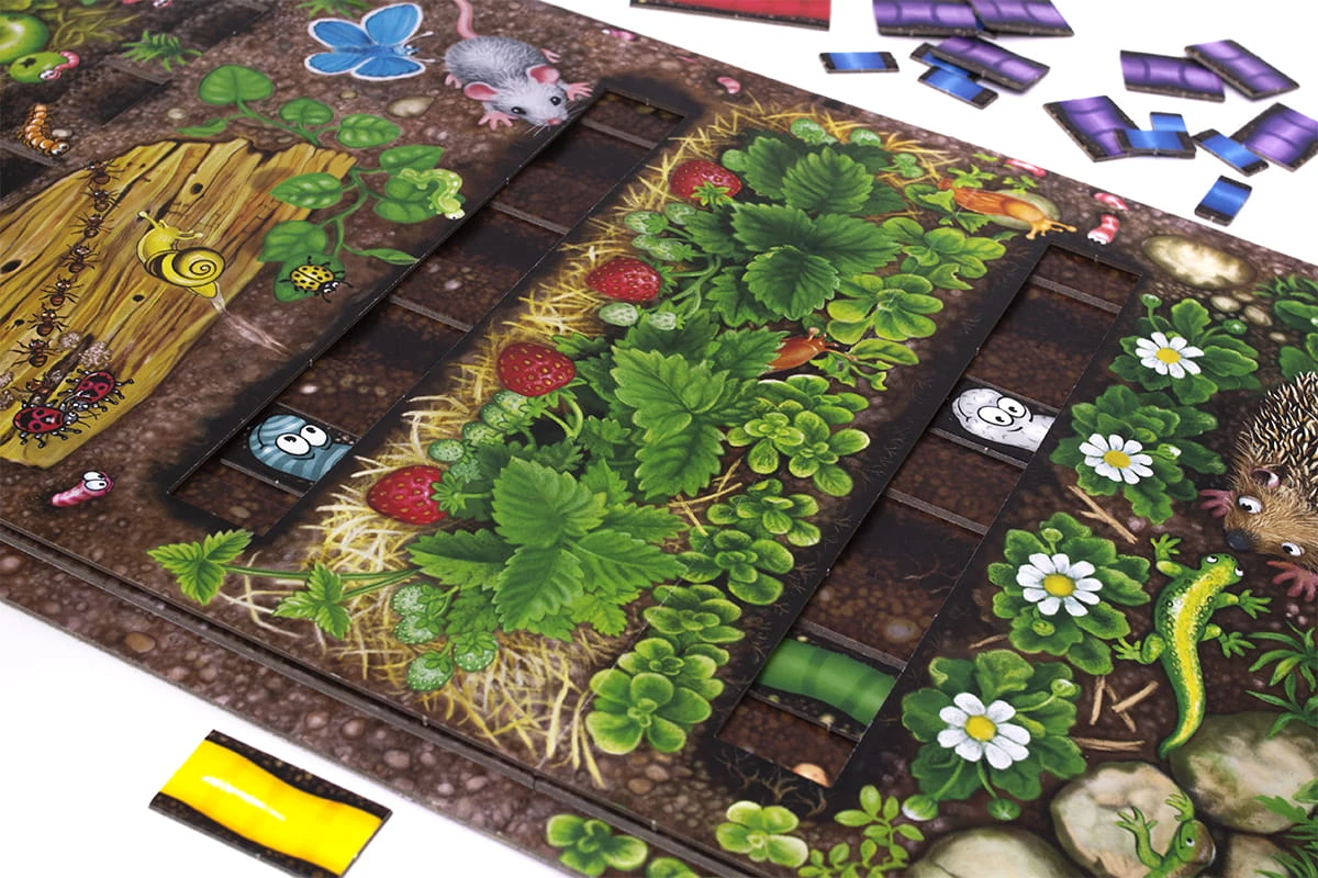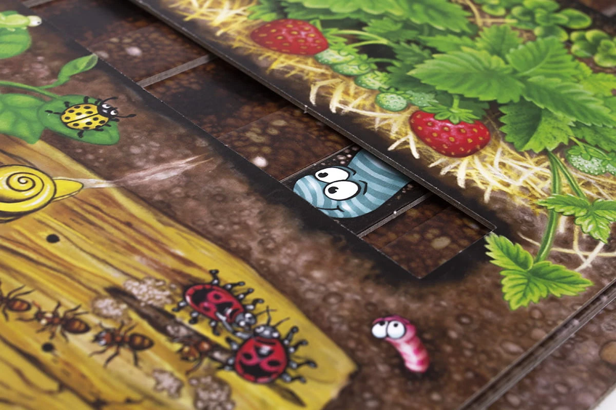- Każdy z graczy bierze po jednej głowie dżdżownicy i wsuwa ją do odpowiedniej szczeliny w planszy.