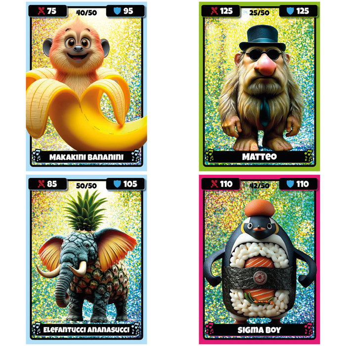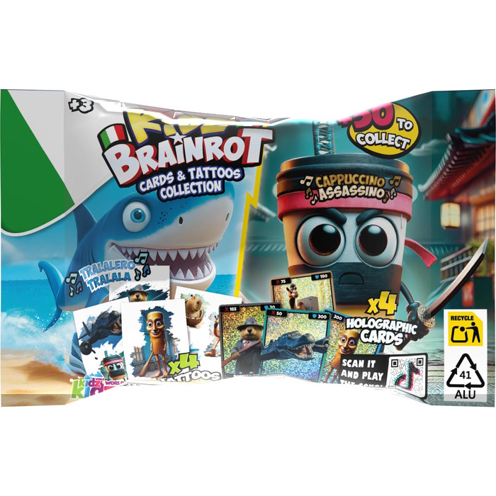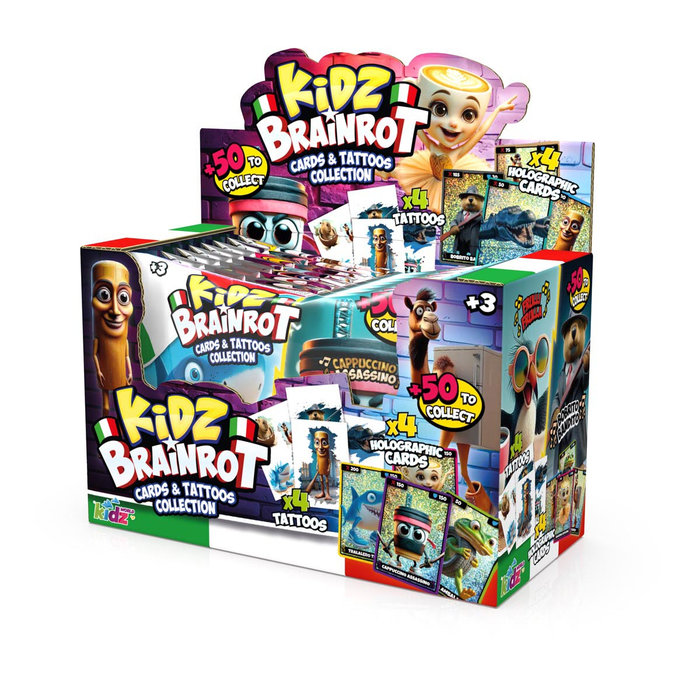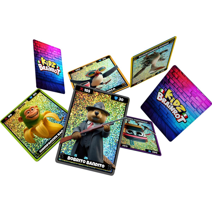 Wejdź do szalonego, kolorowego świata Kidz Brainrot – to kolekcja, która rozkręci każdą zabawę! Odkryj ponad 50 unikalnych kart, pełnych zakręconych postaci i błyszczących kart holograficznych, które naprawdę robią wrażenie!