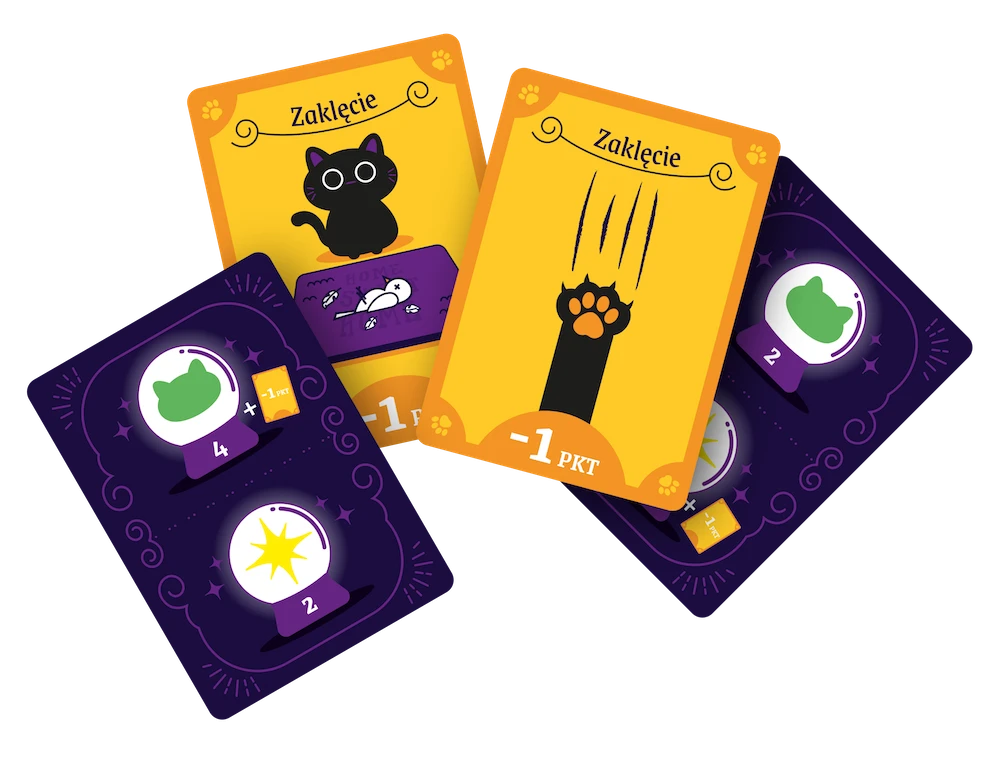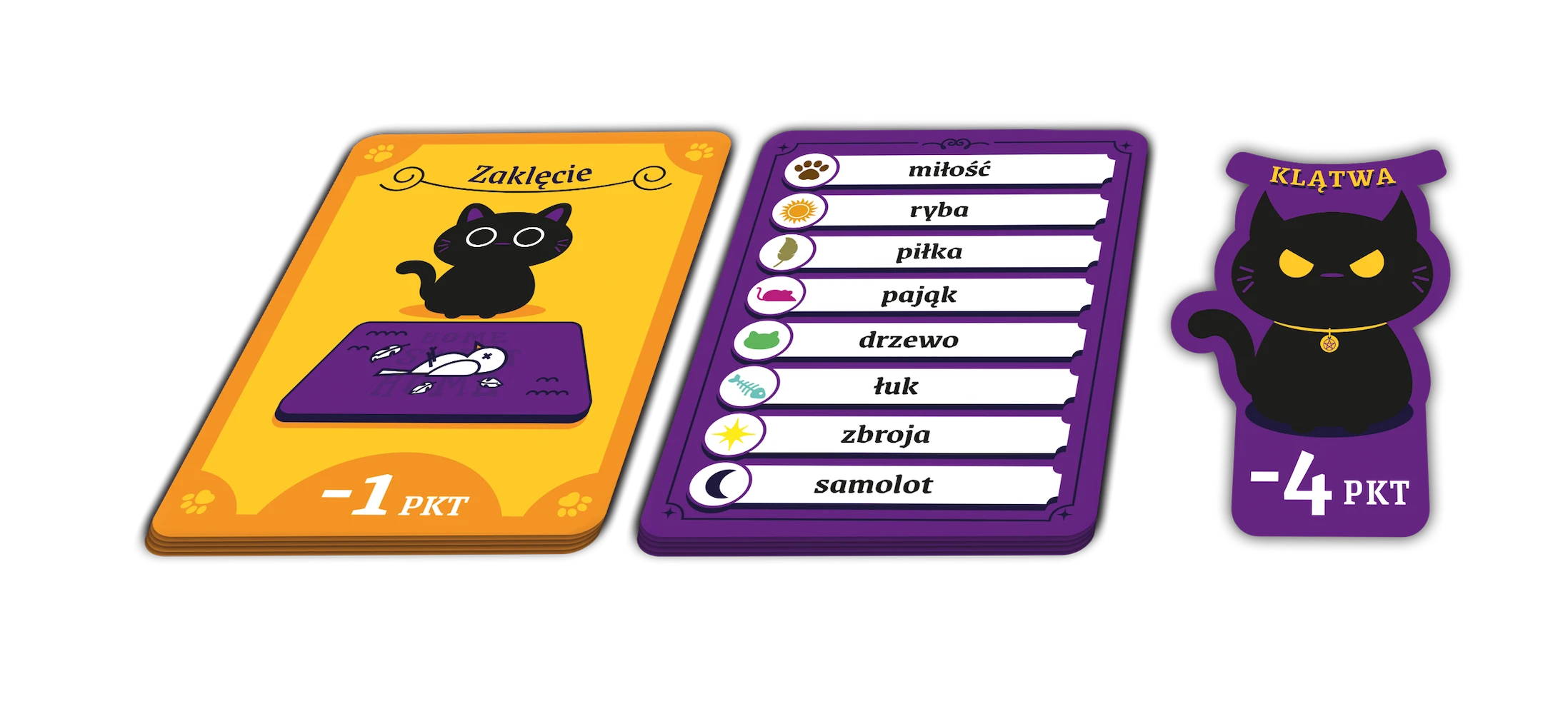 - Podpowiedzi muszą być związane z hasłem. Jeśli większość grupy uzna, że wskazówki gracza były zbyt mało precyzyjne, otrzyma on kafelek kociej klątwy. Ta przechodnia kara sprawia, że jej właściciel straci 4 punkty pod koniec gry.