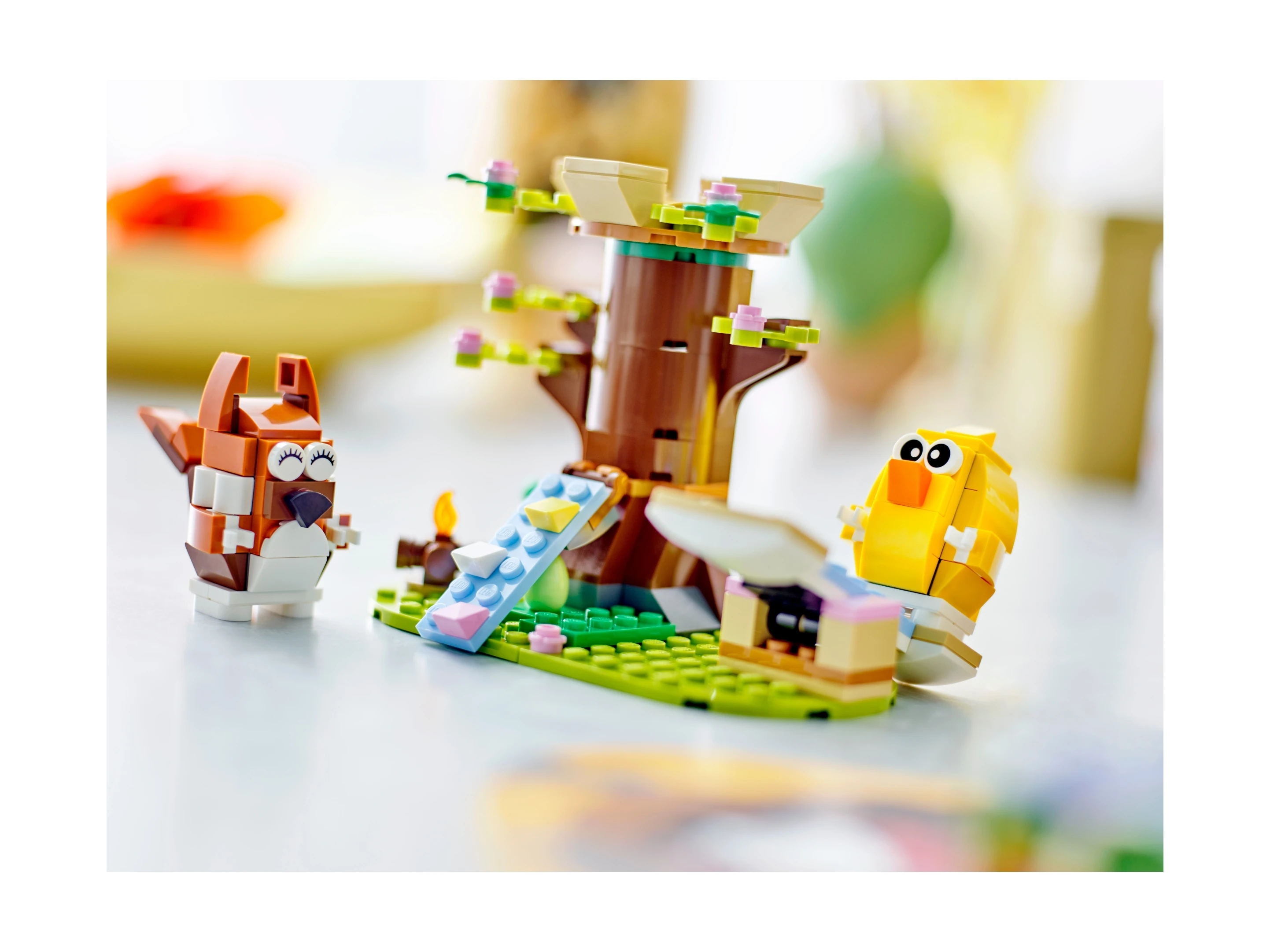 Cechy zestawu LEGO ICONIC 40709 – Wiosenny plac zabaw dla zwierząt: