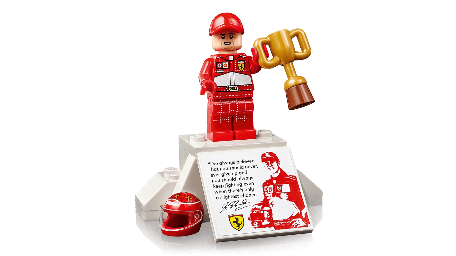 - Minifigurkę Michaela Schumachera w kombinezonie Ferrari