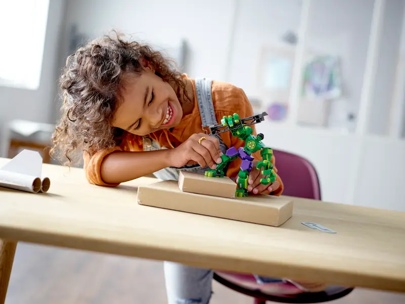- Niezwykły prezent – mali superbohaterowie mogą uczestniczyć w nieskończonych przygodach dzięki zestawowi LEGO® Marvel Mechaniczna zbroja Hulka z gigantyczną, ruchomą maszyną do walki.