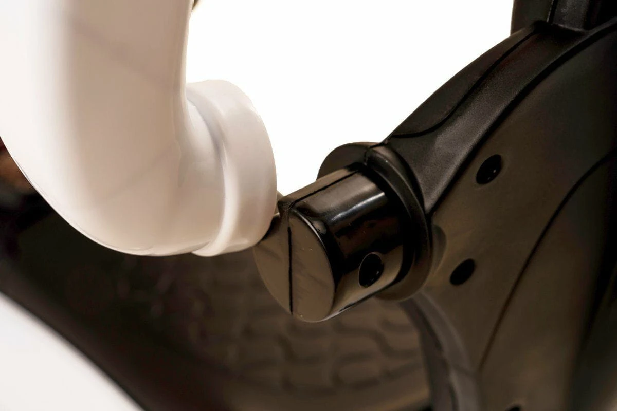 - Element zabezpieczający przed wywróceniem - specjalna stopka umieszczona z tyłu jeździka chroni dziecko przed niebezpiecznym przechyleniem pojazdu. W razie potrzeby stabilizuje pojazd, opierając się o podłoże, co pozwala uniknąć wywrotki.