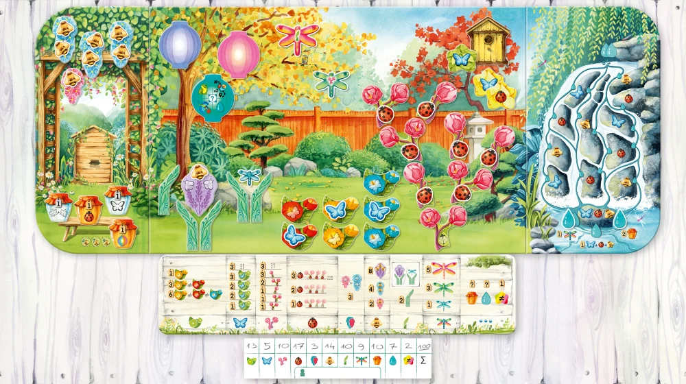 - Gdy każdy z graczy zgromadzi 15 narzędzi w swojej doniczce, gra dobiega końca. Podliczacie punkty za posadzone rośliny i zgromadzone owady zgodnie z planszetką punktacji, a zwycięzcą zostaje osoba, która zgromadziła ich najwięcej.