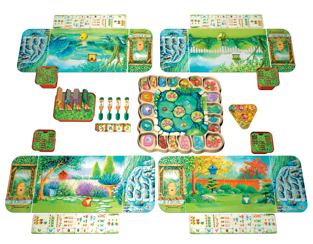 - Każdy z graczy zaczyna z własną planszą ogrodu – różnią się one stylem i kolorystyką, jednak oferują takie same możliwości początkowe. Oprócz tego otrzymujemy też po jednej pergoli i kaskadzie, które także stanowią obszar gry.