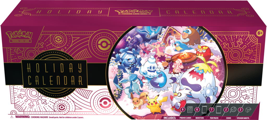 Pokémon TCG: Holiday Calendar to prawdziwa gratka dla kolekcjonerów i pasjonatów niezwykłego świata Pokémonów! Ten zestaw sprawdzi się idealnie jako wyjątkowy prezent, kalendarz adwentowy lub wygodny sposób na powiększenie swojego zbioru gadżetów z sympatycznymi stworkami!