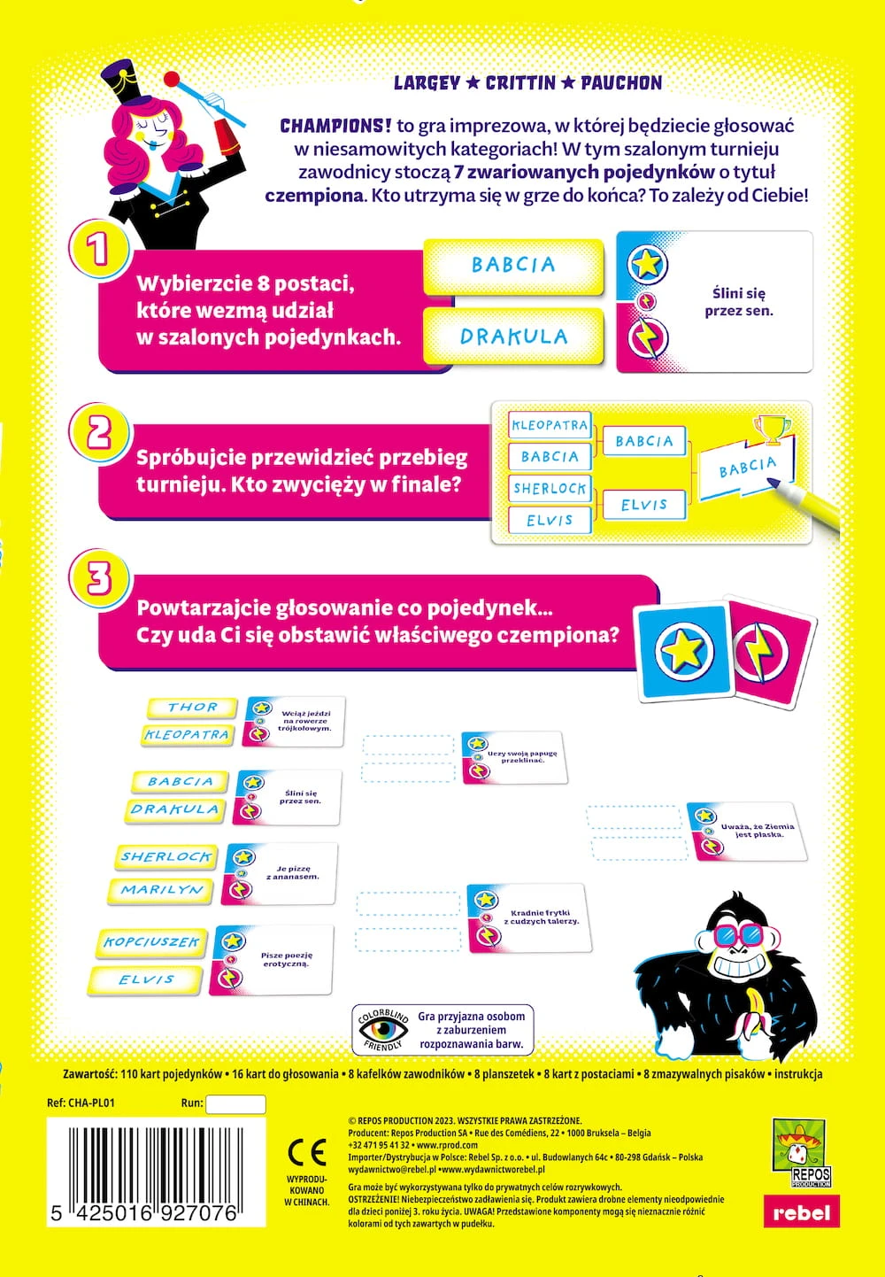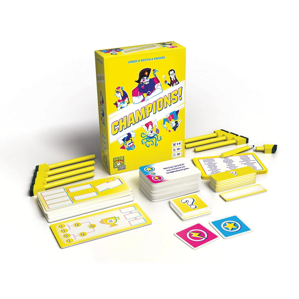 Champions! to idealna gra imprezowa: ma minimum zasad, można ją w pełni dopasować do wiedzy i możliwości graczy i jest pełna zwariowanego humoru.