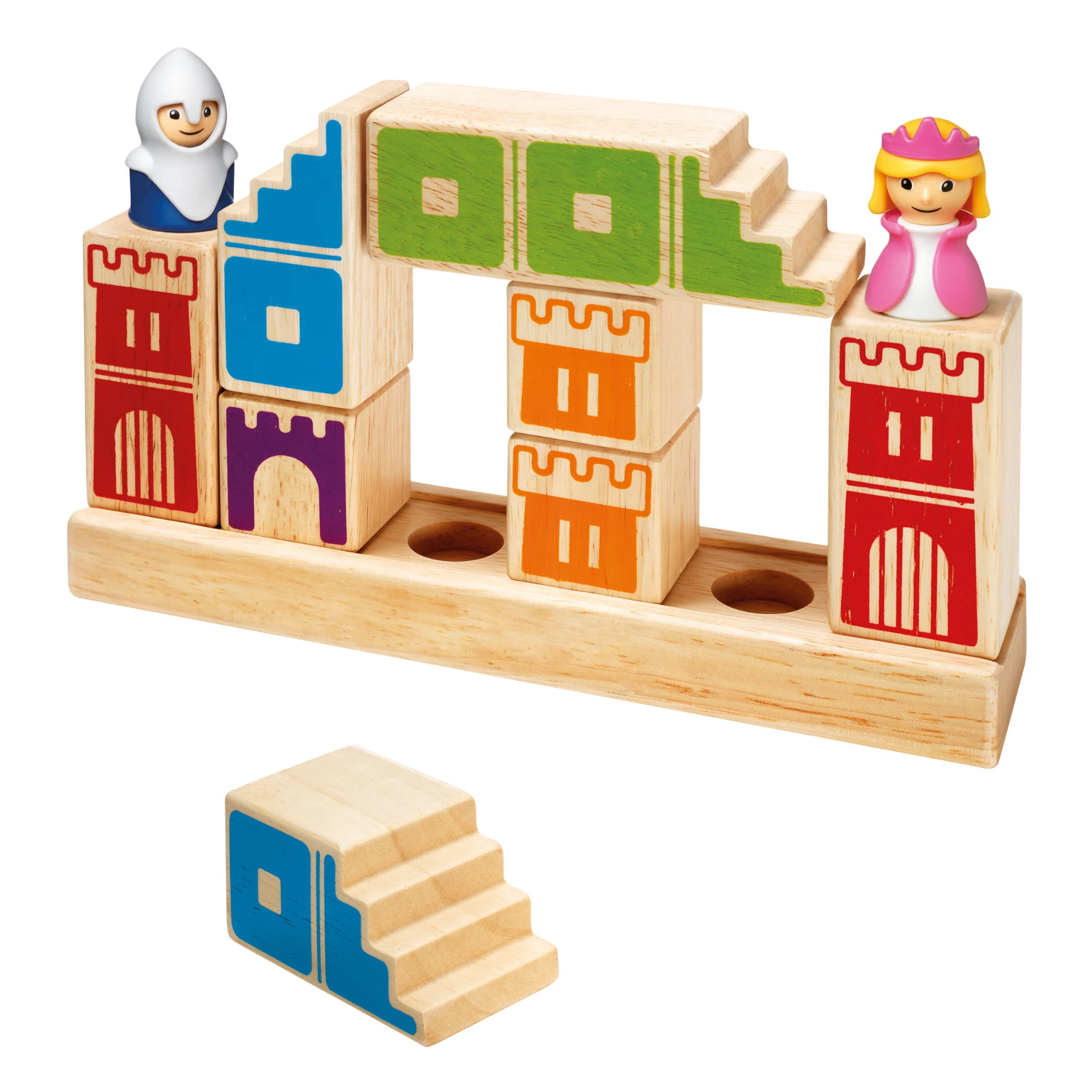 Zestaw zawiera drewniane klocki przedstawiające wieże, mosty i schody, a także książeczkę z zadaniami o rosnącym poziomie trudności. Każde wyzwanie to nowa łamigłówka wymagająca logicznego myślenia i kreatywności.