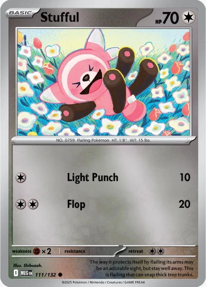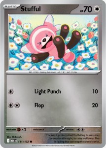 Stufful jest Pokémonem typu Colorless, który dzięki swoim atakom może wspierać ofensywę w grze i dobrze sprawdza się w początkowej fazie rozgrywki, przygotowując pole dla silniejszych Pokémonów.