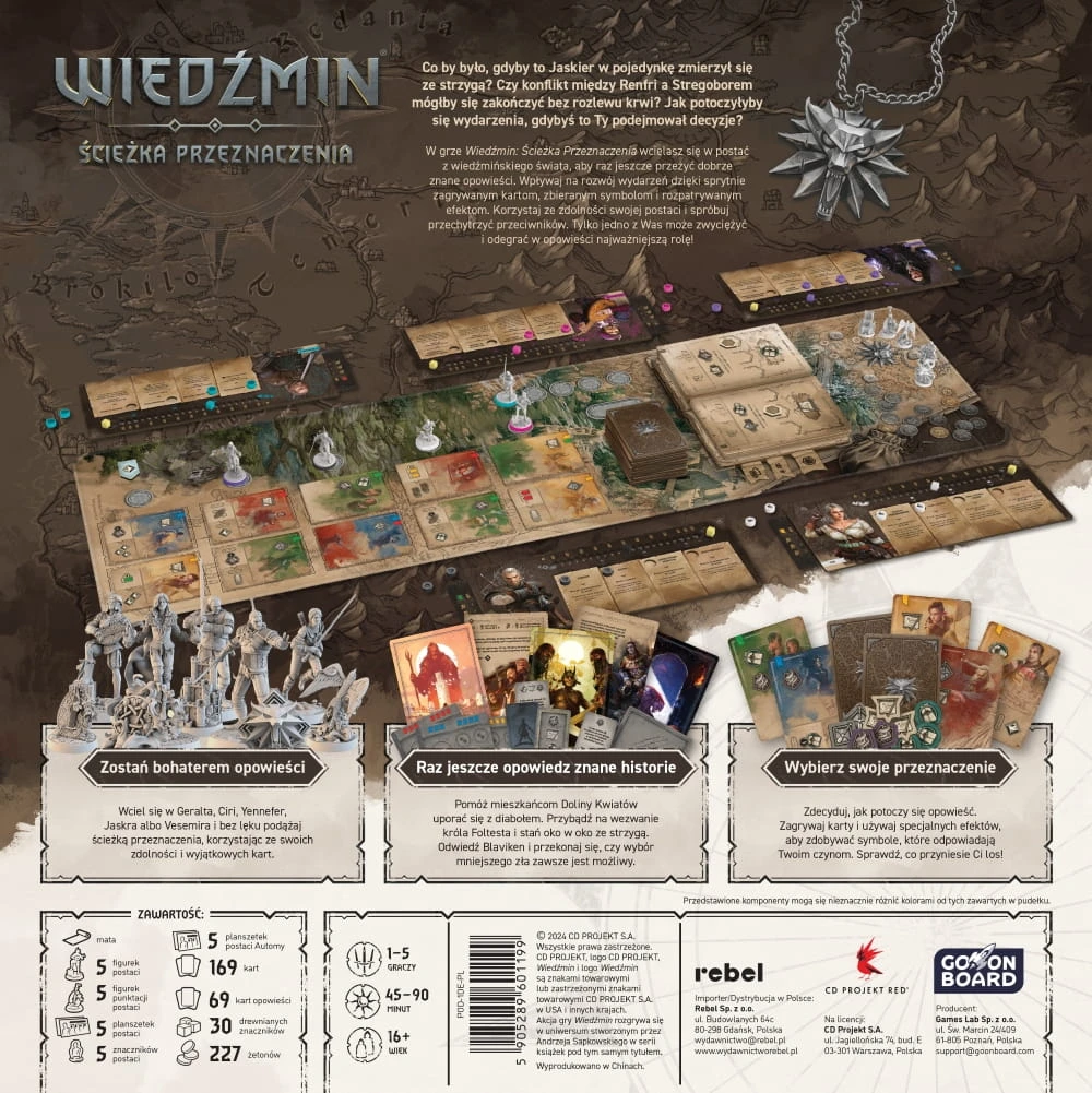 Wiedźmin: Ścieżka Przeznaczenia to gra rywalizacyjna, która opiera się na mechanice budowania stołu (tableau building). Podczas rozgrywki wcielamy się w postacie z wiedźmińskiego świata, aby raz jeszcze przeżyć dobrze znane opowieści. W zależności od podejmowanych decyzji i wykonywanych akcji zdarzenia mogą przybrać zaskakujący obrót!