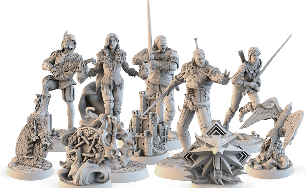 Wiedźmin: Ścieżka Przeznaczenia - Edycja deluxe to nie lada gratka dla wszystkich, którzy cenią sobie estetykę na planszy i dopracowane elementy. W pudełku znajdziemy zestaw 10 wykonanych z dbałością o szczegóły figurek wraz z podstawkami. Dzięki nim nasze postacie otrzymuje swoją przestrzenną reprezentację, podnosząc walory estetyczne zabawy i zwiększając jej klimat. Dodatkowo ta wersja zawiera ulepszone, dwuwarstwowe planszetki oraz specjalne pudełka na karty opowieści.