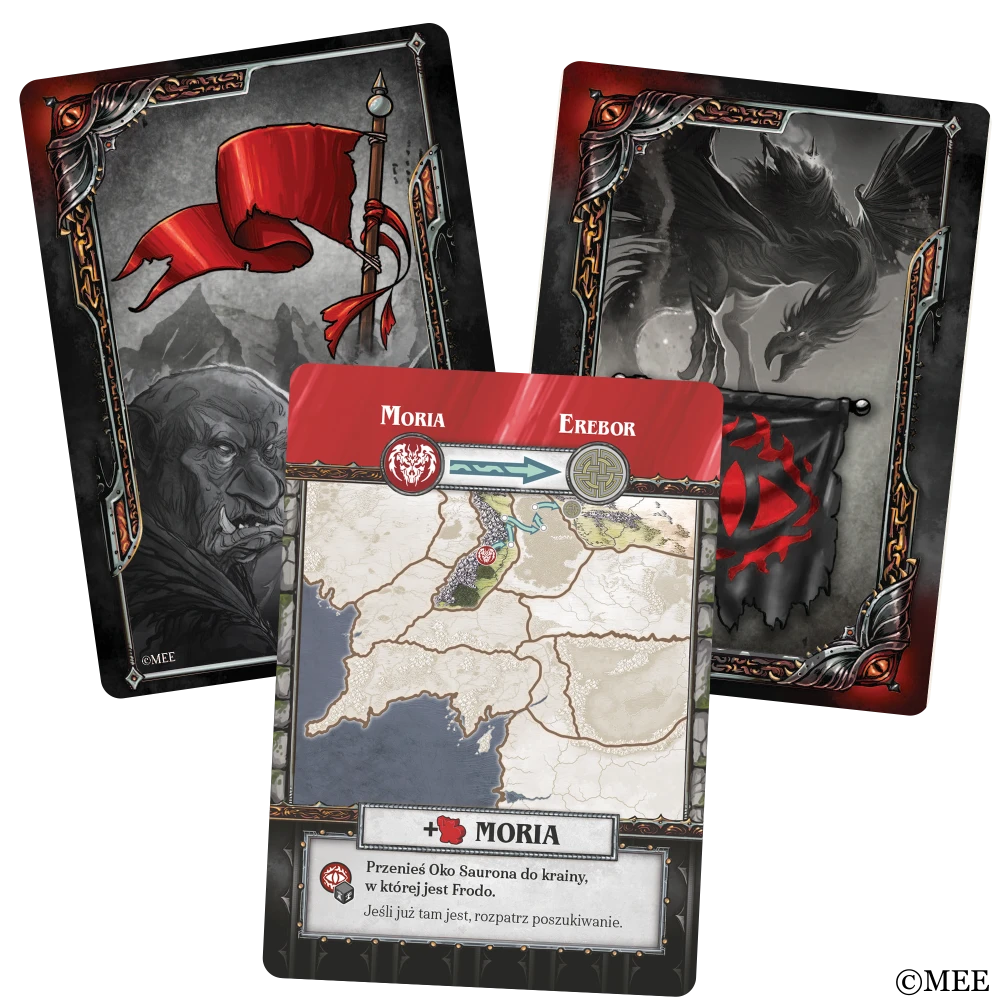 - Wśród dostępnych akcji mamy do wyboru przemieszczanie się po mapie Śródziemia, wymianę kart z innymi graczami, pozyskiwanie żetonów z symbolami poszczególnych krain, wezwanie sojuszników, walkę z siłami cienia oraz zdobycie twierdzy.